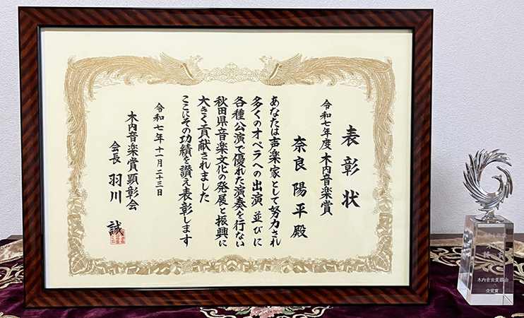 令和7年11月23日、本学の奈良陽平非常勤講師が、「木内音楽賞」を受賞しました。