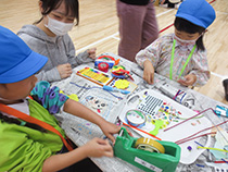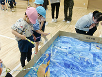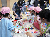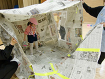 園舎の隣には聖園短大があり、短大ライネルスホール(体育館)でかけっこや体操をして体を動かすことを楽しんでいます。また、短大の学生さんが準備してくださった遊びや素材に触れる機会もあり、子どもたちの「やりたい」「触ってみたい」など様々な気持ちを引き出してくれる交流となっています。 |