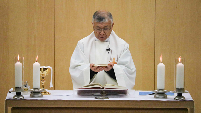 12月19日(金)にカトリック秋田教会飯野耕太郎神父の司式のもと、本学マリアホールでクリスマスミサを行いました。